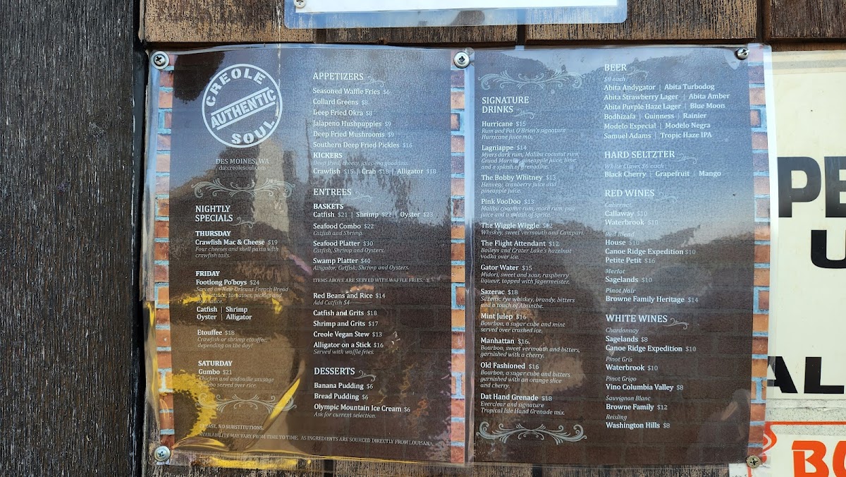 Welcome to Creole Soul, a hidden gem nestled in Des Moines, WA, where the vibrant essence of Creole cuisine shines. Located in the Alley at 22341 Marine View Dr S Suite D, this charming restaurant boasts a menu that warms the heart and soul.